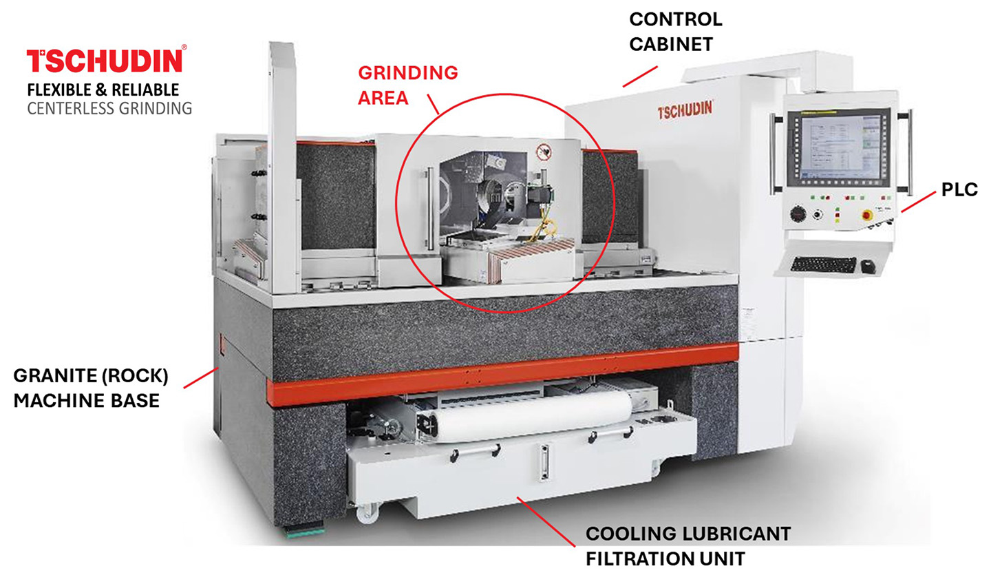 Learn about the components that make up a centerless grinding machine and the functions performed by each component. With all components, whether machine bed, spindle drives, or support rails, there are certain things to consider, such as vibrations and heat flow, to ensure that your process can be run economically and successfully.